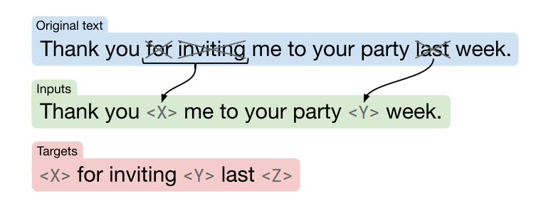 - T5 모델은 인풋 토큰의 시퀀스를 랜덤하게 마스크 처리하는 span corruption을 사용하여 인코더를 훈련함