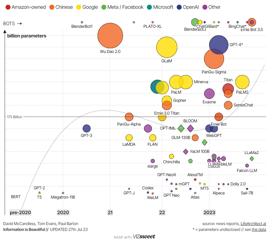 GPU를 사용하여 모델 훈련을 진행하다 보면 “CUDA out of memory”라는 메세지를 보셨을 것입니다. 언어 모델의 크기가 커질수록, 메모리 부족 문제를 많이 마주하게 됩니다. 아래는 현재 이 글을 작성하는 2023년 7월 기준으로 현재 올라온 모델의 사이즈를 나타낸 표인데, 21년도 이후에 등장한 언어 모델들은 10억 (1B) 파라미터는 기본이고, 1,000억 (100B) 이 훌쩍 넘는 초대형 언어 모델들이 등장합니다. 아무리 커도 3억 정도의 파라미터를 가졌던 BERT 모델 (340M) 과 비교하면 엄청난 차이입니다. 아래의 사이트에 들어가보시면, 최신 모델을 업데이트 해놓으니 참고해보기 좋을 것 같습니다.