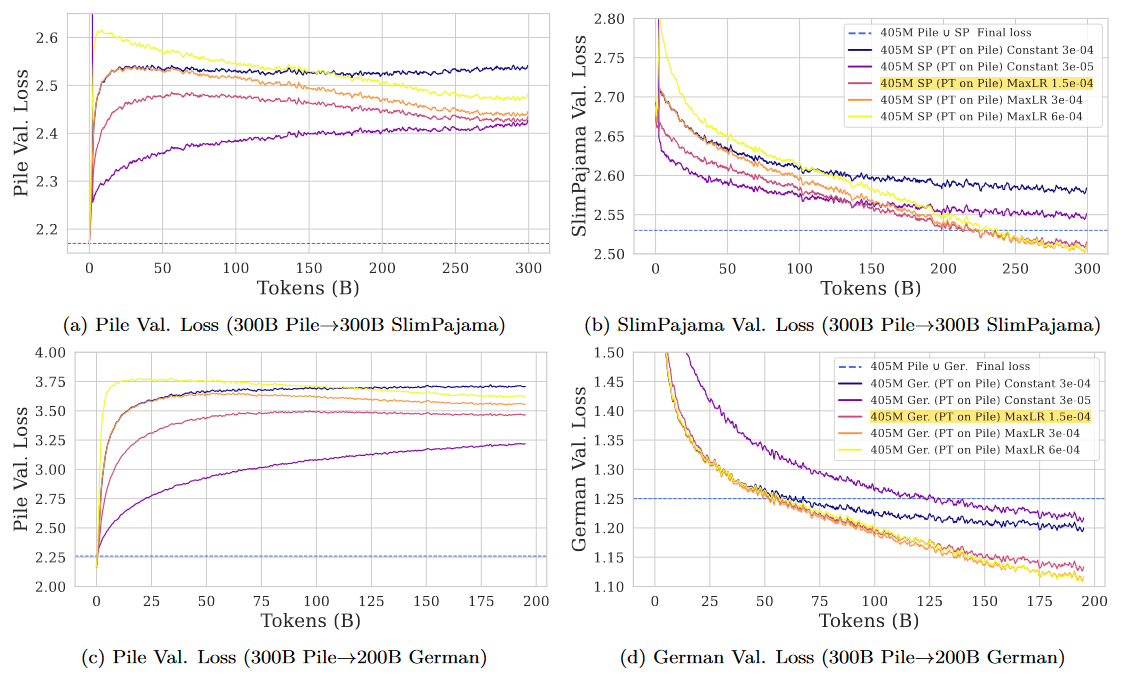 LR re-warming, LR re-decaying, 이전 데이터의 replay → 이것들의 조합으로 scratch로 fully retraining하는 것만큼의 성능을 보여줬다.